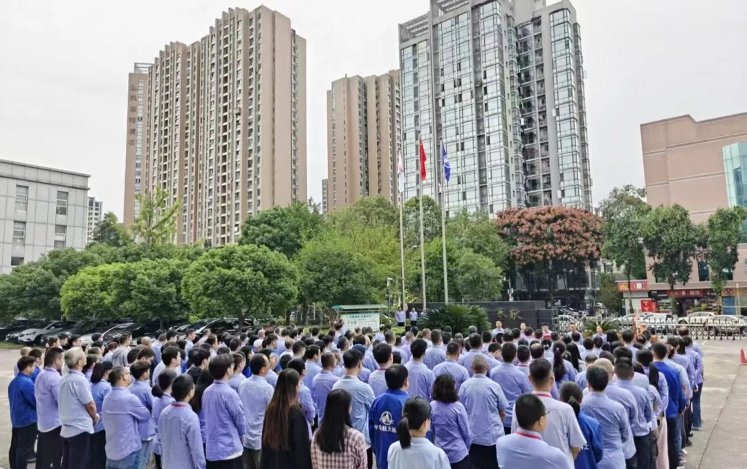 9月30日,航天通信所屬單位在杭州、成都、沈陽、長沙、綿陽、鎮江等地同步舉行升旗儀式。