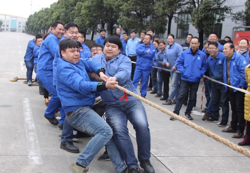 哨聲響起,比賽開始!參賽隊員們一齊高呼著“一二,一二”, 雙手緊握長繩,憋足了勁拼命往后拉,公司領導在隊伍旁助陣加油,未參賽的員工自發組成啦啦隊為比賽隊員吶喊加油。