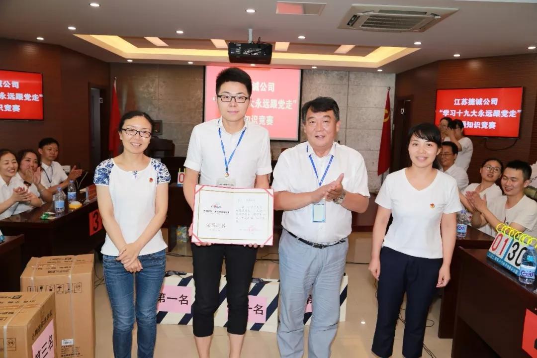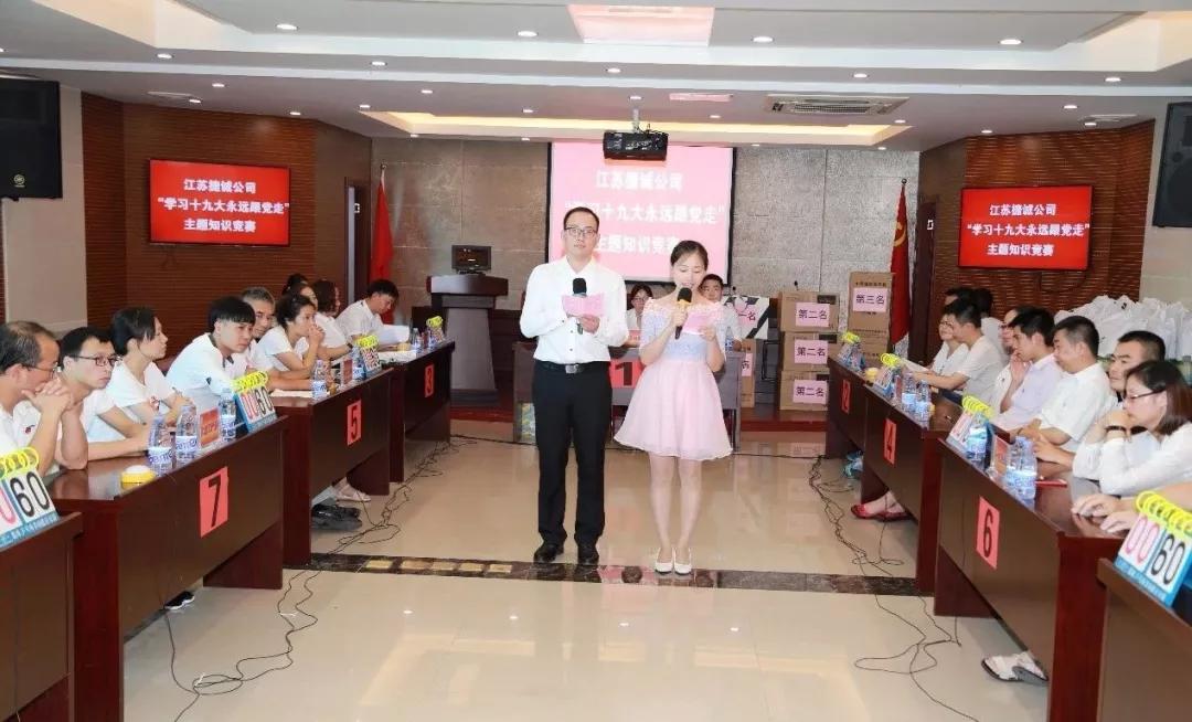 720日,江蘇捷誠開展了以“學習十九大,永遠跟黨走”為主題的宣傳貫徹黨的十九大精神知識競賽活動。公司領導班子成員,各黨支部黨員代表共79人參加活動。