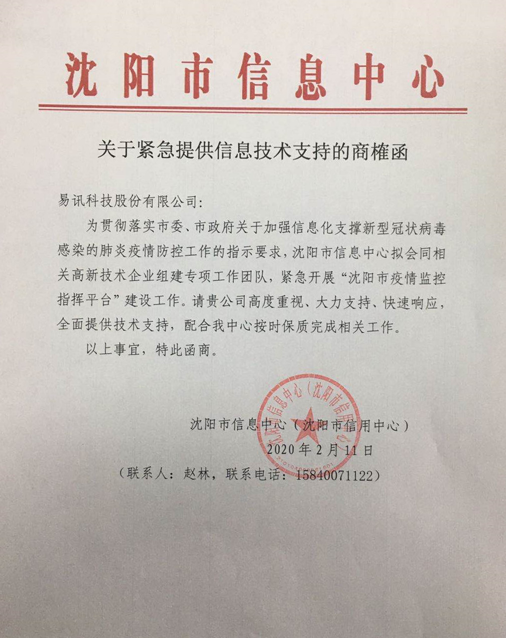 疫情就是命令,防控就是責任。目前,疫情防控工作已到了最關鍵的攻堅階段,航天通信所屬易訊科技,主動擔當,自覺履行社會責任,助力沈陽市政府開展新型冠狀病毒引發肺炎疫情防控工作。