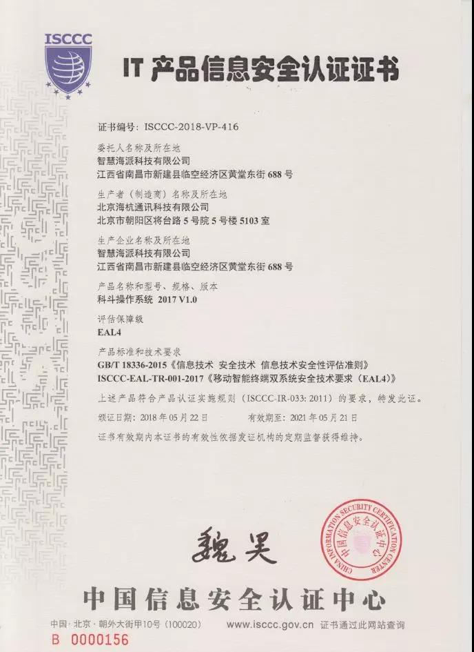 經(jīng)過多方歷時(shí)半年的共同努力,智慧海派科技有限公司送檢的科斗操作系統(tǒng)(Tadpole OS 2017/V1.0)通過了信息產(chǎn)業(yè)信息安全測(cè)評(píng)中心有關(guān)移動(dòng)智能終端雙系統(tǒng)的EAL4級(jí)認(rèn)證檢測(cè),于2018年6月份順利獲得了中國(guó)網(wǎng)絡(luò)安全審查技術(shù)與認(rèn)證中心(原中國(guó)信息安全認(rèn)證中心)的EAL4級(jí)的信息安全認(rèn)證證書,這是中國(guó)網(wǎng)絡(luò)安全審查技術(shù)與認(rèn)證中心針對(duì)非智能卡類IT產(chǎn)品頒發(fā)的首張EAL高級(jí)別信息安全認(rèn)證證書。