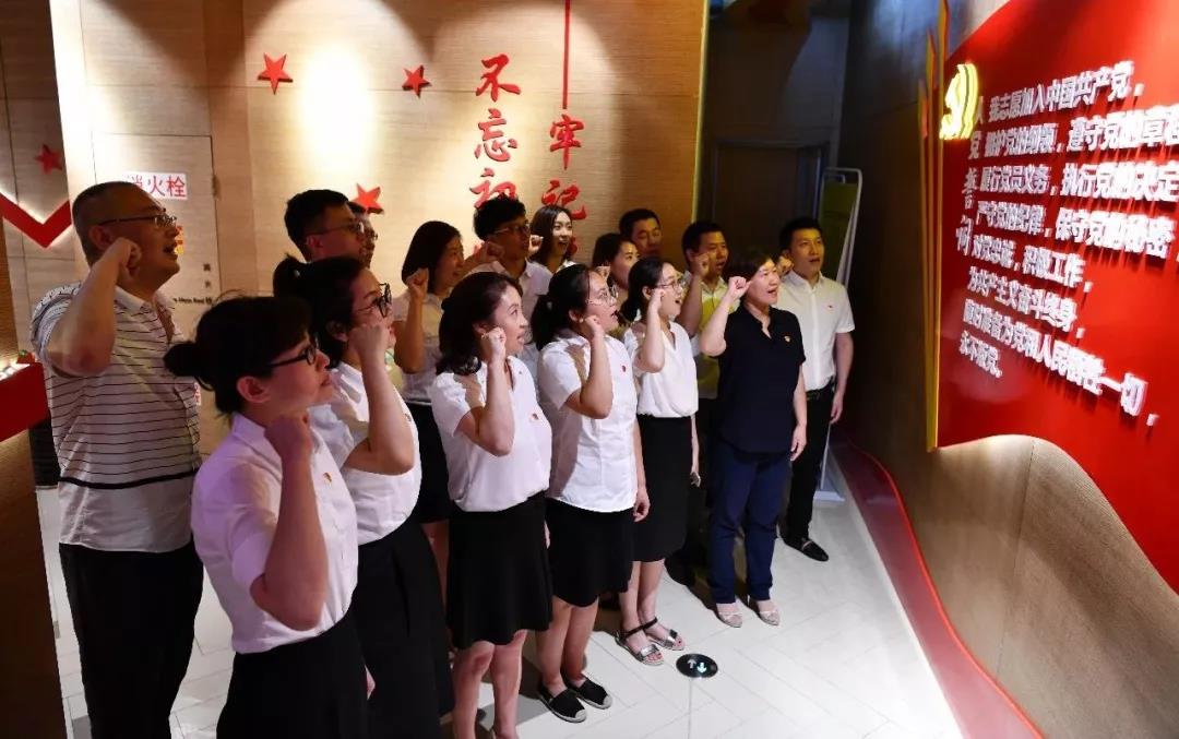 活動中,黨員們認(rèn)真閱讀紅色經(jīng)典書籍,重溫黨的光輝歷史,了解了共產(chǎn)主義起源和入黨誓詞內(nèi)容的演變,學(xué)習(xí)了焦裕祿、郭明義等優(yōu)秀共產(chǎn)黨員的先進(jìn)事跡。其中紅色激情體驗(yàn)室讓黨員們體驗(yàn)到了先進(jìn)的科技與輝煌黨史的有機(jī)結(jié)合,VR技術(shù)讓珍貴歷史鏡頭原聲再現(xiàn),仿佛置身于那段激情燃燒的歲月,給人一種身臨其境的感覺。最后,黨員們在莊嚴(yán)的黨旗下重溫入黨誓詞并共同唱響了國際歌。